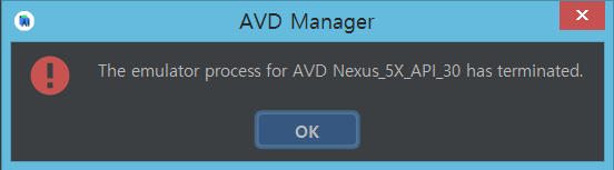 - AVD 설치 다 하고 실행버튼 눌렀는데 위와 같은 오류창이 떴다