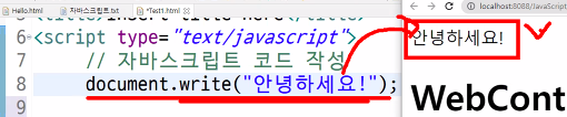 - 자바스크립트는 <script> 태그로 head 안에도 쓸 수 있고 body 안에도 쓸 수 있음 (최신 트렌드는 body에 씀)