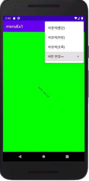 case R.id.itemGreen: baseLayout.setBackgroundColor(Color.GREEN);
