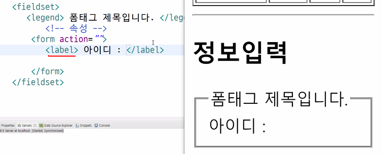 · label 속성 없이도 폼 안에 글자 생성할 수 있지만 label로 지정해서 쓰면 더 많은 디자인이 가능