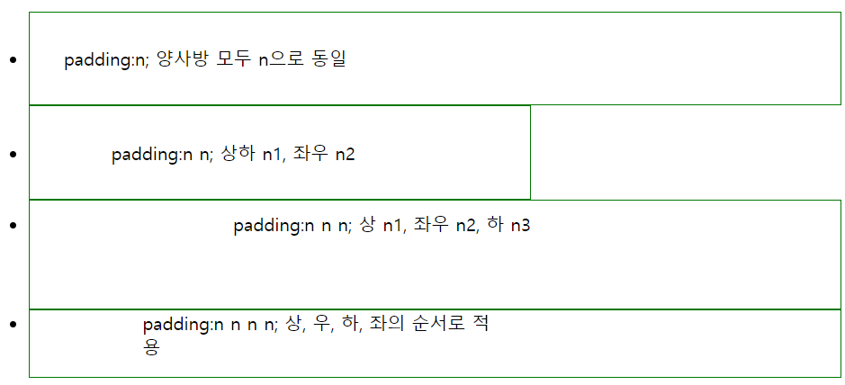 - 값이 4개일 때 : 상 n1, 우 n2, 하 n3, 좌 n4 만큼 적용