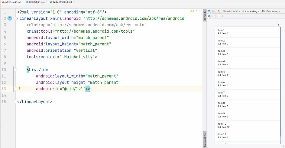 - 주차장 목록을 listview로 보여주도록 디자인하기