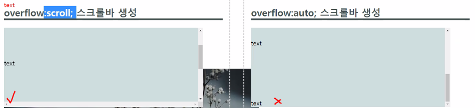 - auto는 가로 스크롤바가 등장하지 않았음 ! 필요없기 때문
