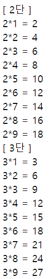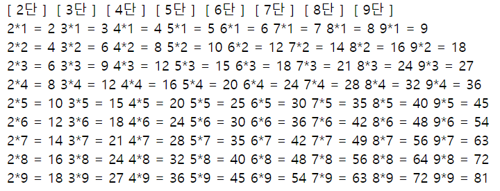 - 구구단 출력 ( 2단 ~ 9단 ) : 가로로 출력하기