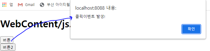 <input type="button" value="버튼" onclick="alert('클릭이벤트 발생!');"><br>
