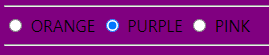 <input type="radio" name="col" onclick="fun4('PURPLE');"> PURPLE