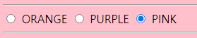 <input type="radio" name="col" onclick="fun4('PINK');"> PINK