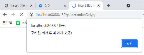 // name 쿠키정보 확인 -> 쿠키값 삭제