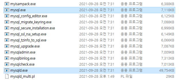 - 이 위치에 mysql.exe과 mysqld.exe 가 설치되어있어야함