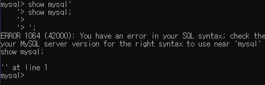 - 잘못 친 (')이거 다시 치고 세미콜론(;) 같이 입력해서 엔터치면 된다