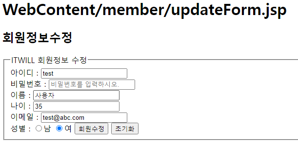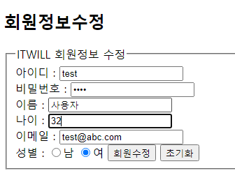 <legend> ITWILL 회원정보 수정 </legend>