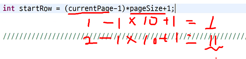int startRow = (currentPage-1)*pageSize + 1;