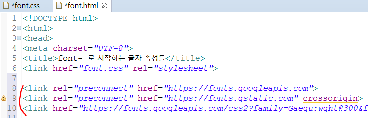 - <link> 코드를 그대로 복사해서 이클립스로 돌아와 .html 파일의 링크 위치에 붙여넣어준다
