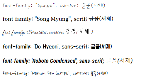 - 글꼴 이름은 " " (따옴표)로 묶어준다
