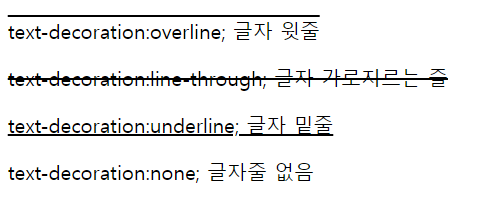 - line-through : 글자 가로지는 줄 (취소선)
