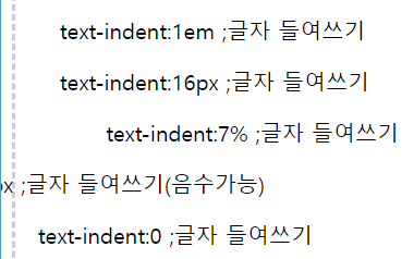 - 1em : em 단위로 글자 1자만큼 들여씀